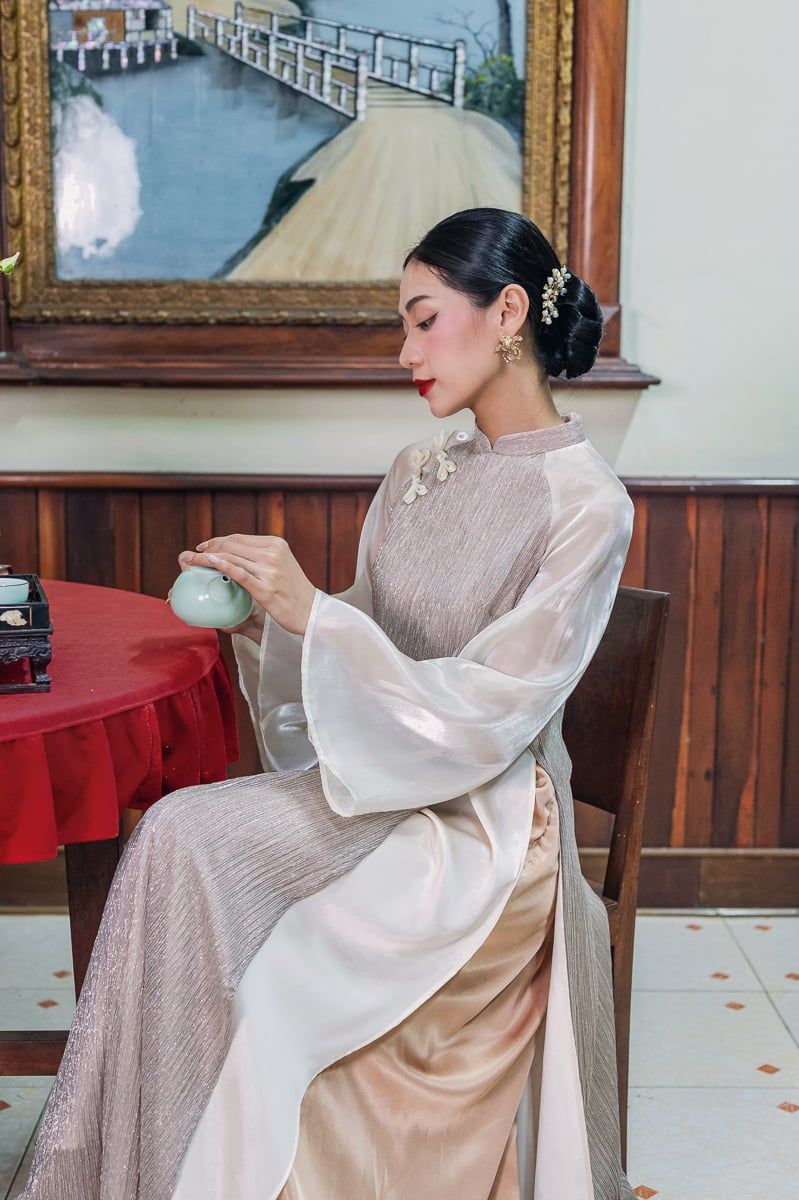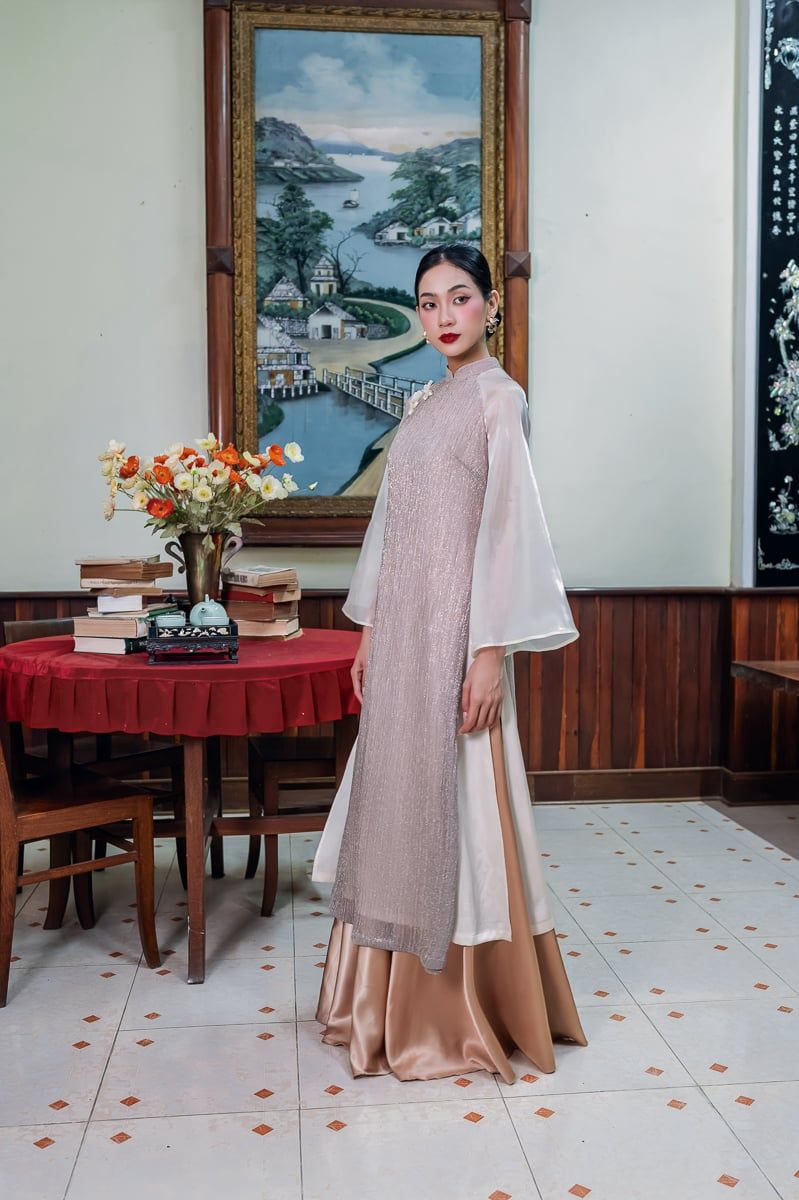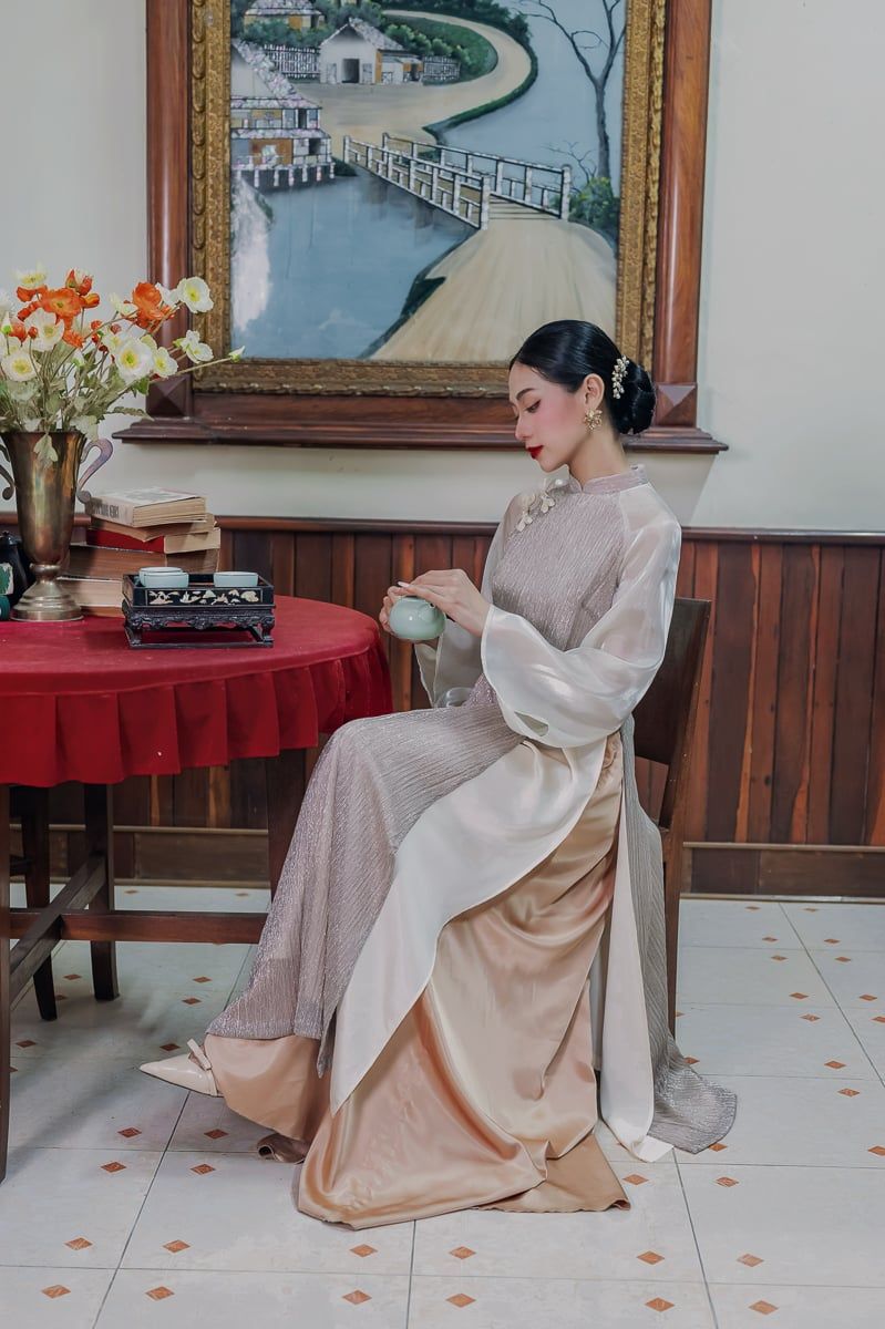 - Chất liệu: Phối 2 lớp tơ ánh kim & lụa