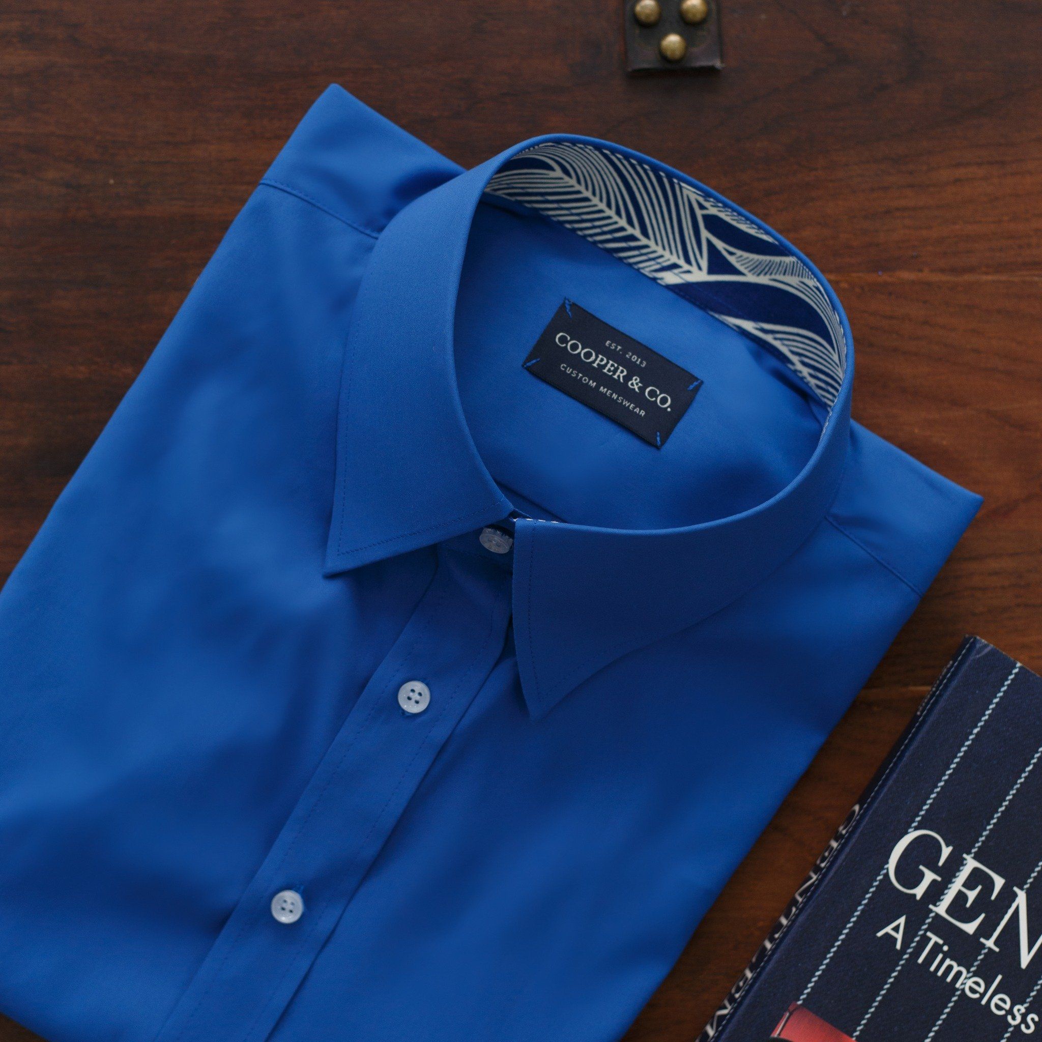 Áo Sơ Mi Xanh Phối Lá Cổ