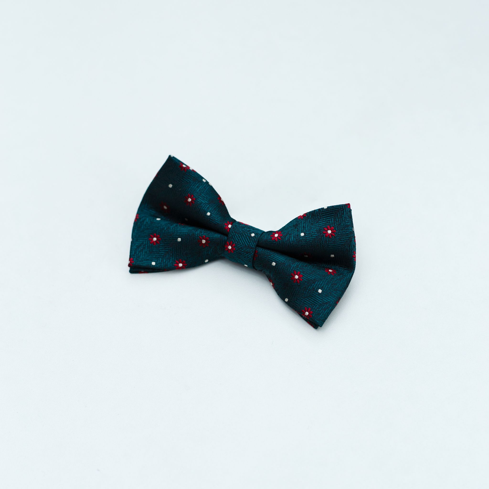 Nơ Xanh Họa Tiết Hoa Đỏ
